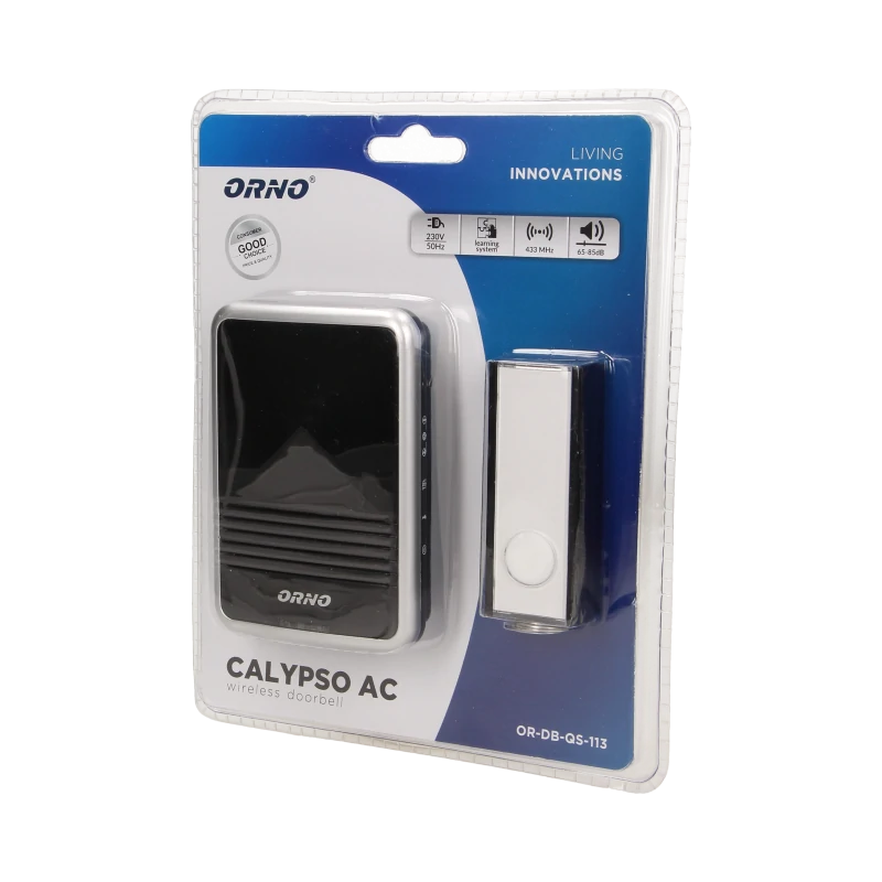 Dzwonek bezprzewodowy świecący czarny 300m 36 dźwięków AC 230V CALYPSO II OR-DB-QS-159ORNO