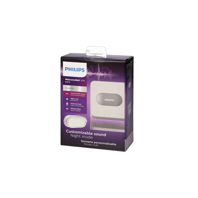 Dzwonek bezprzewodowy z funkcją wgrywania MP3 8 melodii 300m Philips WelcomeBell MP3 ORNO