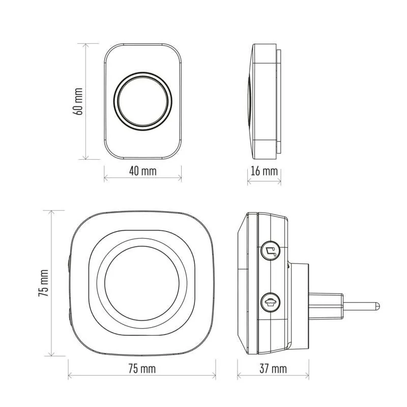 Bezprzewodowy dzwonek P5733G marki EMOS nie wymagający baterii, to świetne rozwiązanie do każdego mieszkania, a nawet biura. Wodoodporny przycisk zasilany jedną baterią CR2032 (w zestawie), dzięki wysokiej szczelności może być zamontowany przy furtce. Odbiornik zasilany jest zwykłym tradycyjnym gniazdem sieciowym. Dodatkowo zielony dzwonek bezprzewodowy posiada dobrze widoczną sygnalizację optyczna dzwonka, jak i przycisku. Produkt wyposażony został w 36 melodii oraz 4-poziomową regulację głośności. Maksymalna głośność dzwonienia to 110dB.