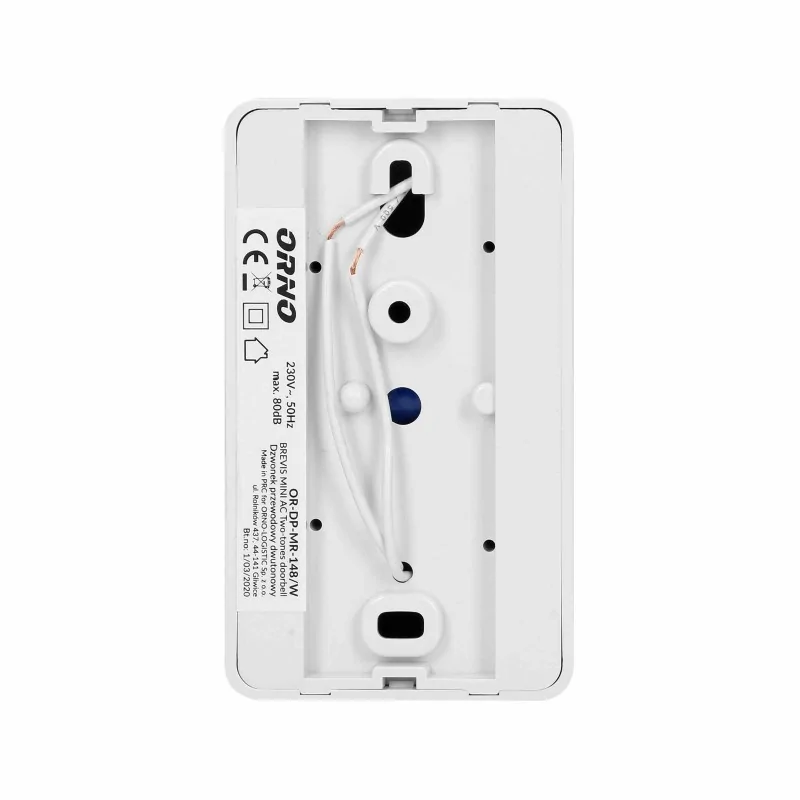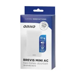 Dzwonek dwutonowy OR-DP-MR-148/W BREVIS Mini AC, to prosty w montażu i wygodny w użyciu dzwonek elektromechaniczny z funkcją przeciw-blokady łącznika. Przeznaczony do zastosowania w pomieszczeniach zamkniętych z instalacją dzwonkową prądu zmiennego 230V, np. w domu, mieszkaniu, sklepie, itd. Jest to produkt marki ORNO, w który głośność wynosi 80dB. Produkt objęty jest trzyletnią gwarancją producenta.