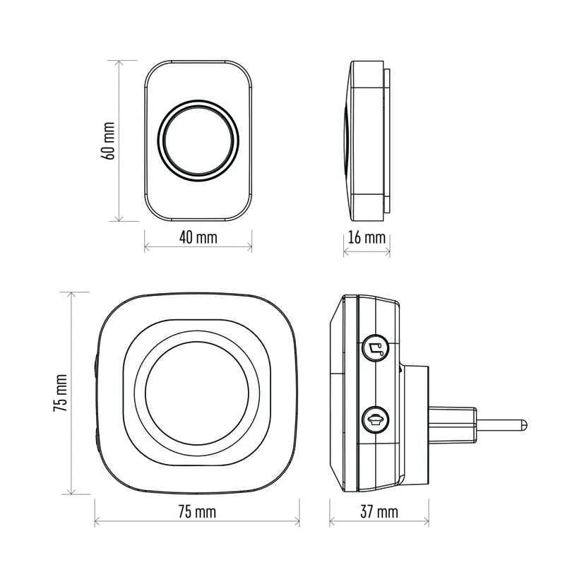 Bezprzewodowy dzwonek P5733S marki EMOS nie wymagający baterii, to świetne rozwiązanie do każdego mieszkania, a nawet biura. Wodoodporny przycisk zasilany jedną baterią CR2032 (w zestawie), dzięki wysokiej szczelności może być zamontowany przy furtce lub na drzwiach mieszkania. Odbiornik zasilany jest zwykłym tradycyjnym gniazdem sieciowym. Dodatkowo srebrny dzwonek bezprzewodowy posiada dobrze widoczną sygnalizację optyczną dzwonka, jak i przycisku. Produkt wyposażony został w 36 melodii oraz 4-poziomową regulację głośności. Maksymalna głośność dzwonienia to 110dB.
