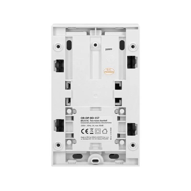 Dzwonek przewodowy biały elektromechaniczny BIM-BAM z wbudowanym transformatorem 230V-8V BELIS OR-DP-BD-157 ORNO