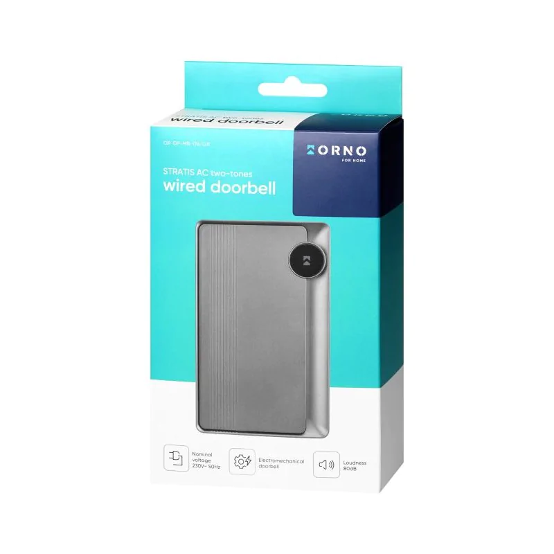 Grafitowy dzwonek przewodowy do drzwi dwutonowy DING DONG 230V STRATIS AC ORNO
