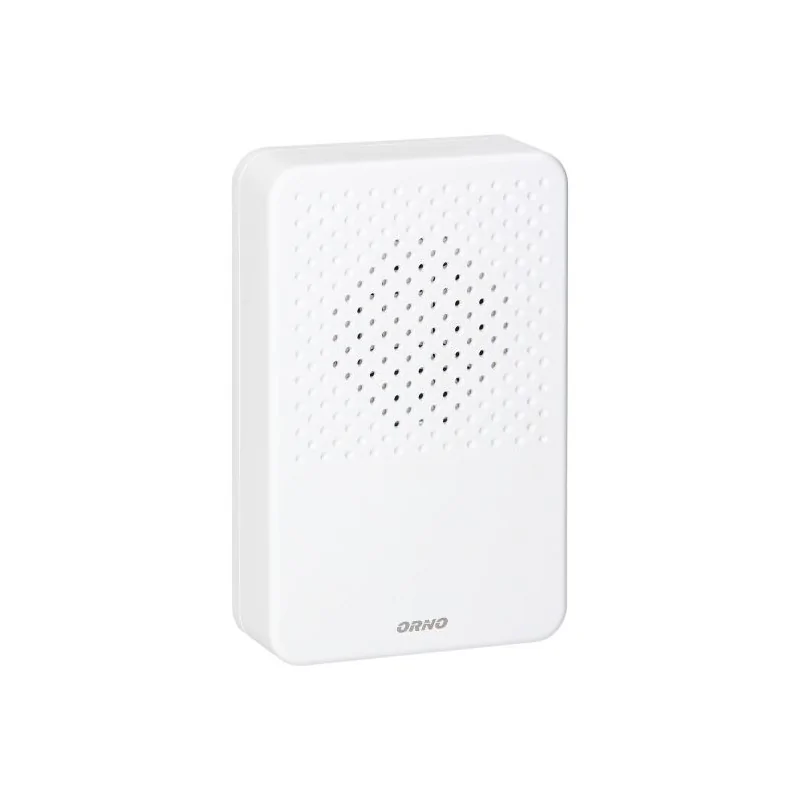 Mały elektroniczny przewodowy dzwonek do drzwi marki ORNO charakteryzuje się nowoczesnym stylem i niewielkimi wymiarami: 105 x 163 x 37 mm. Dzwonek przeznaczony jest do zastosowania w pomieszczeniach zamkniętych z instalacją dzwonkową prądu zmiennego 230V np. w domu, mieszkaniu czy sklepie. Obudowa dzwonka jest w kolorze śnieżnobiałym. Głośność dzwonka wynosi od 30 d0 80dB. Dzwonek wydaje sygnał jednotonowy 1 pulsujący ton.