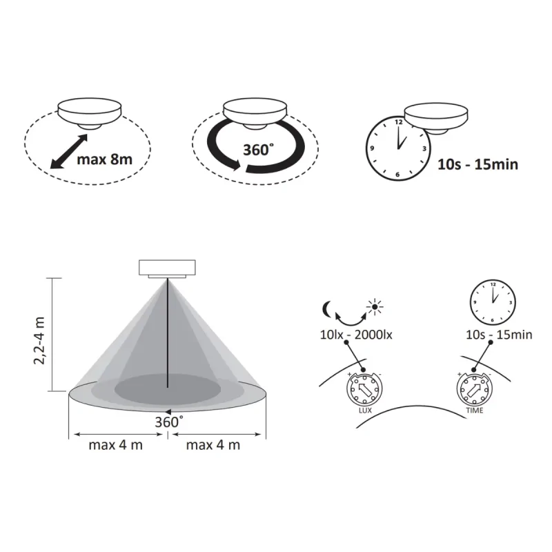 - Regulacja czasu świecenia: Od 10 sek. (± 3 sek.) do 15 min. (± 3 min)