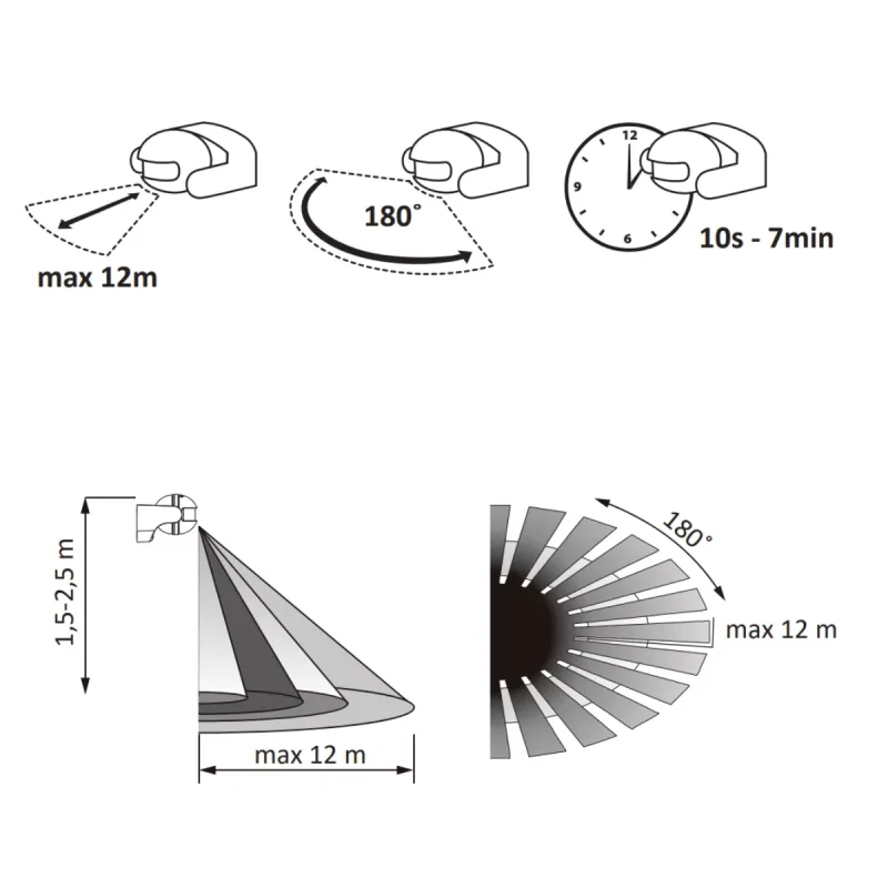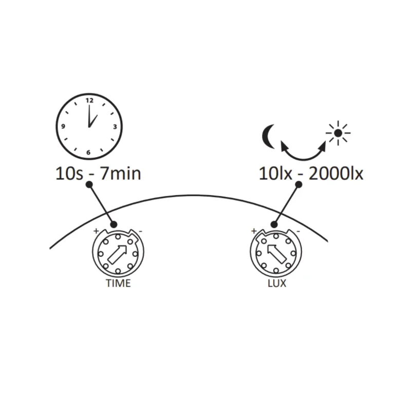 - Regulacja czasu świecenia: Od 10 sek. (± 3 sek.) do 7 min. (± 2 min)