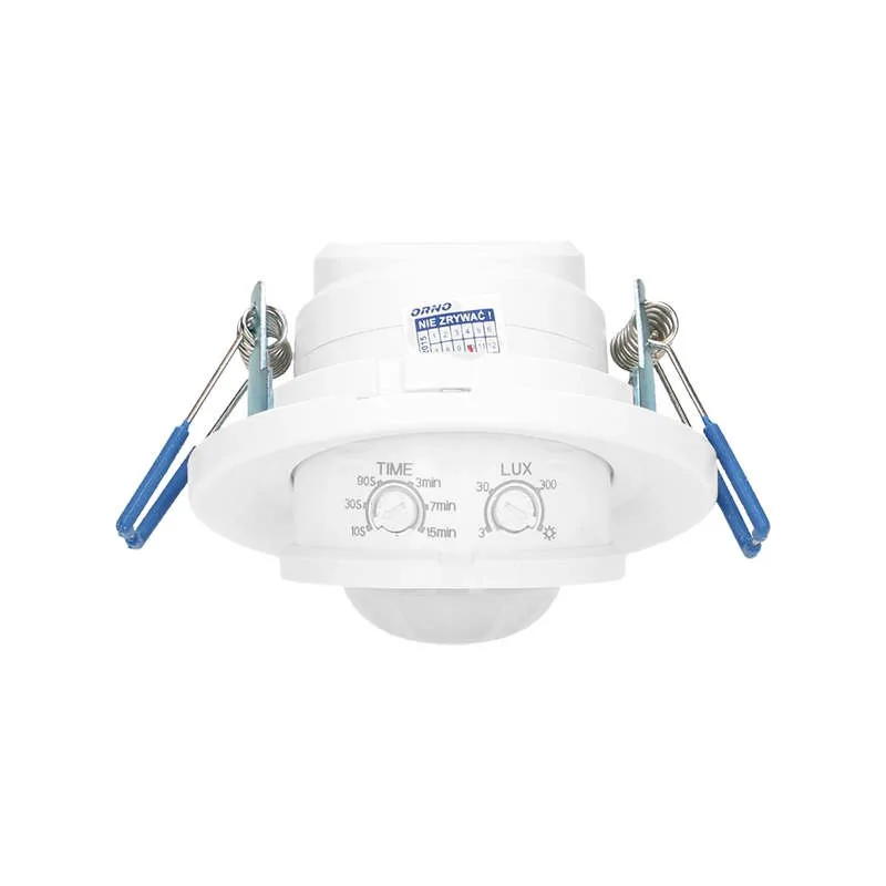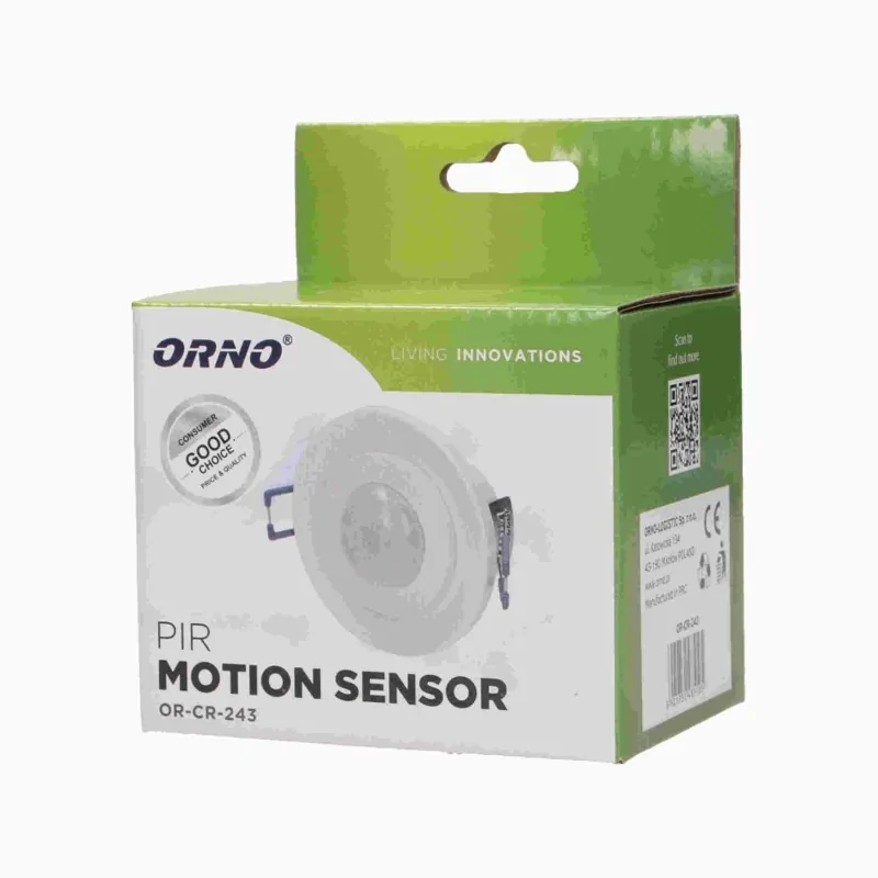 Czujnik OR-CR-243, przystosowany do montażu w sufitach podwieszanych. Jest to produkt marki ORNO, który służy do sterowania oświetleniem lub innymi urządzeniami elektrycznymi. Wbudowane potencjometry do regulacji: czasu świecenia i czułości natężenia światła. Czujnik współpracuje z oświetleniem LED-owym do maksymalnej mocy 300W. Zasięg detekcji urządzenia to 6 metrów. Produkt objęty jest trzyletnią gwarancją producenta.