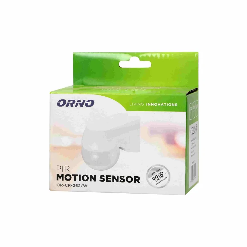 Prezentowane urządzenie OR-CR-262/W marki ORNO, służy do automatycznego sterowania oświetleniem oraz innych urządzeń elektrycznych. Czujnik wyposażony jest w potencjometry do regulacji czasu świecenia i czułości natężenia światła. Maksymalna odległość jaką wyłapuje wynosi 12 metrów, nadaje się do zamontowania wnętrz i na zewnątrz, stopień odporności wynosi IP44. Czujnik współpracuje z oświetleniem LED-owym do max mocy 300W, w przypadku tradycyjnego źródła światła, może wynosić 1200W. Ten model dostępny jest w kolorze czarnym oraz białym. Produkt objęty trzyletnią gwarancją producenta.