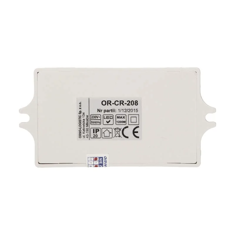Mikrofalowy (radarowy) czujnik ruchu OR-CR-208 marki ORNO, jest aktywnym detektorem ruchu, który wysyła fale elektromagnetyczne wysokiej częstotliwości (5,8GHz) i odbiera ich echo. Czujnik wykrywa zmiany w echu, wywołane nawet najmniejszym ruchem w obserwowanym obszarze. Posiada niewielką emisje mocy (<0,2mW) oraz potencjometry do regulacji: czasu świecenia, zasięgu wykrywania ruchu i czułości natężenia światła. Detekcja ruchu przez szkło, tworzywa sztuczne, płyty kartonowo-gipsowe, brak wpływu temperatury na detekcję. Czujnik współpracuje z oświetleniem LED-owym. Produkt objęty trzyletnią gwarancją producenta.