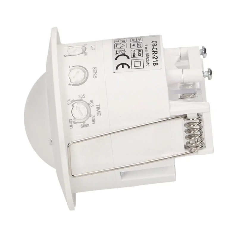 Mikrofalowy (radarowy) czujnik ruchu OR-CR-218, przystosowany do montażu w sufitach podwieszanych, jest aktywnym detektorem ruchu, który wysyła fale elektromagnetyczne wysokiej częstotliwości (5,8GHz) i odbiera ich echo. Czujnik wykrywa zmiany w echu, wywołane nawet najmniejszym poruszeniem w obserwowanym obszarze. Jest to produkt marki ORNO o niewielkiej emisji mocy <0,2mW. Potencjometry do regulacji: czasu świecenia, zasięgu wykrywania ruchu i czułości natężenia światła. Detekcja ruchu przez szkło, tworzywa sztuczne, płyty kartonowo-gipsowe, brak wpływu temperatury na detekcję. Czujnik współpracuje z oświetleniem LED-owym. Produkt objęty jest trzyletnią gwarancją producenta.