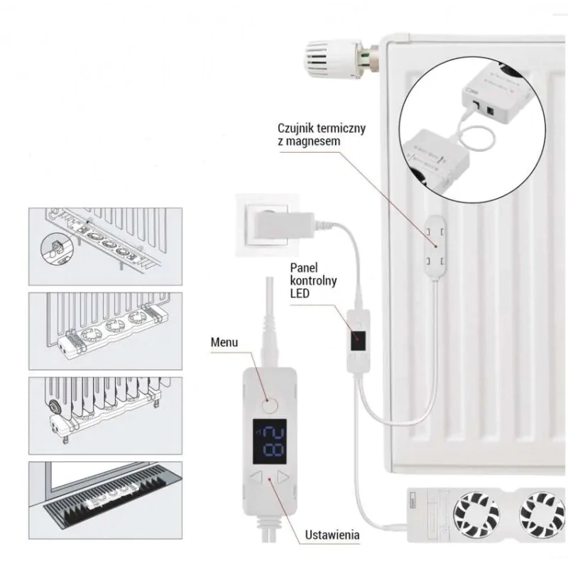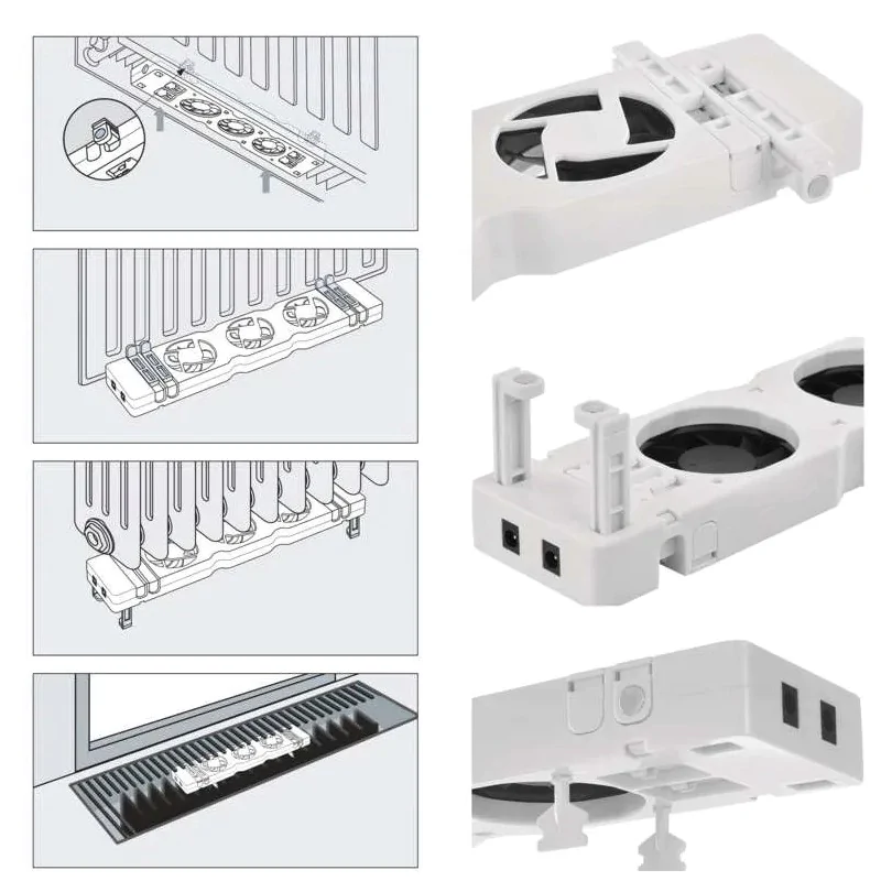Zestaw wentylatorów rozprowadzających ciepło spod kaloryfera
