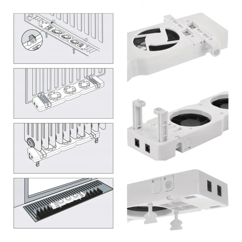 Wentylator doskonale sprawdza się w domach, biurach i mieszkaniach, zwiększając efektywność grzejników poprzez równomierne rozprowadzanie ciepłego powietrza w pomieszczeniu. Dzięki funkcji automatycznego uruchamiania przy temperaturze 28°C, urządzenie może służyć do utrzymania stałej, komfortowej temperatury w wybranych pomieszczeniach. Zastosowanie wentylatora grzejnikowego pozwala szybciej osiągnąć pożądaną temperaturę, co może przełożyć się na mniejsze zużycie energii przez system centralnego ogrzewania.
