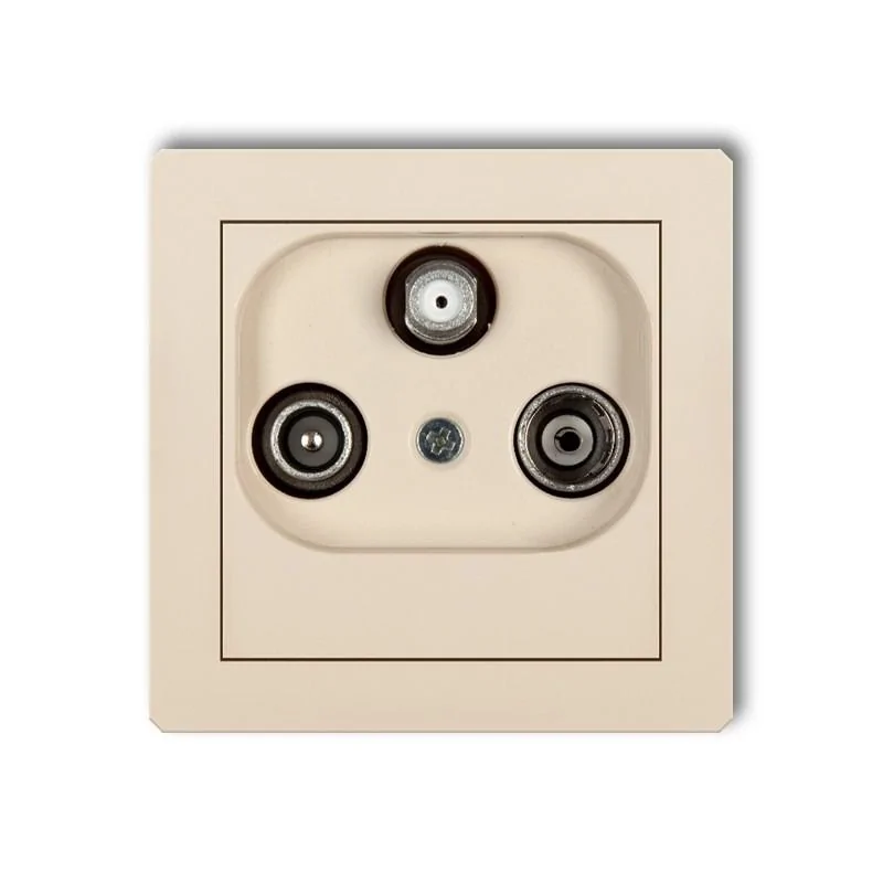 Gniazdo RTV-SAT końcowe koloru beżowego serii DECO firmy KARLIK, przeznaczone do montażu podtynkowego. Gniazdo wymaga dokupienia ramki serii DECO firmy KARLIK.