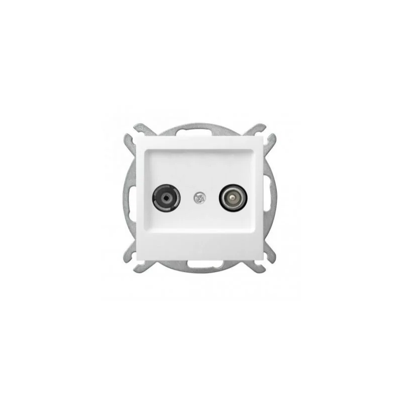 Gniazdo antenowe RTV zakończeniowe w kolorze białym serii AS firmy OSPEL, przeznaczone do montażu podtynkowego. Gniazdo wymaga dokupienia ramki serii AS firmy OSPEL.