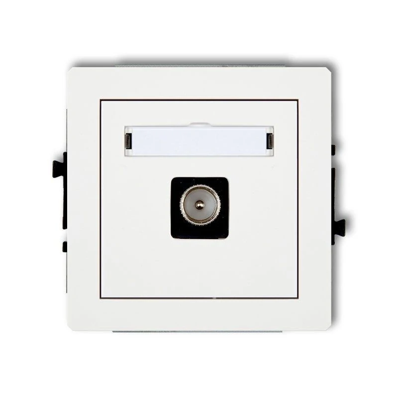 Mechanizm gniazda antenowego, to pojedyncze gniazdo TV z serii podtynkowej Deco. Gniazdo antenowe TV, występuje w kolorze białym, wykonane zostało z najwyższej jakości komponentów tworzywa sztucznego, odpornego na zarysowania oraz promienie UV. Gniazdo polskiej produkcji z serii DECO przeznaczone jest do montażu podtynkowego, dopasuje się do wnętrz o różnym charakterze. Dzięki modułowej budowie, użytkownik ma możliwość dobrania ramki w kilku wariantach kolorystycznych. Mechanizm gniazda antenowego umożliwia proste i estetyczne podłączenie jednego urządzenia do odbioru telewizji w miejscu, gdzie nie występuje rozbudowana instalacja kablowa. Gniazdo antenowe marki KARLIK posiada 5-letnią gwarancję. Element sprzedawany jest bez ramki.