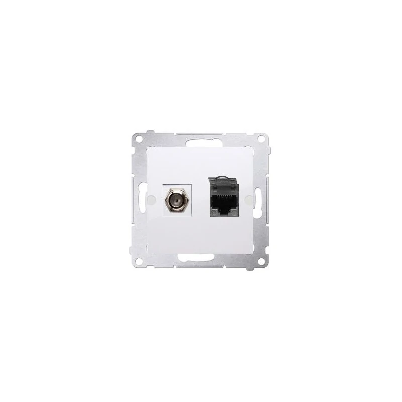 Gniazdo antenowe typu "F" + RJ45 kat.6 (moduł); biały