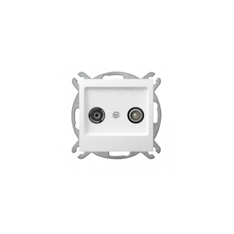 Gniazda antenowe służą do rozprowadzania sygnału telewizyjnego i radiowego w instalacjach indywidualnych i zbiorczych. Gniazdo podtynkowe z możliwością montażu w ramkach wielokrotnych. Gniazdo RTV firmy Ospel z serii AS w kolorze białym, montowane gwintowo.