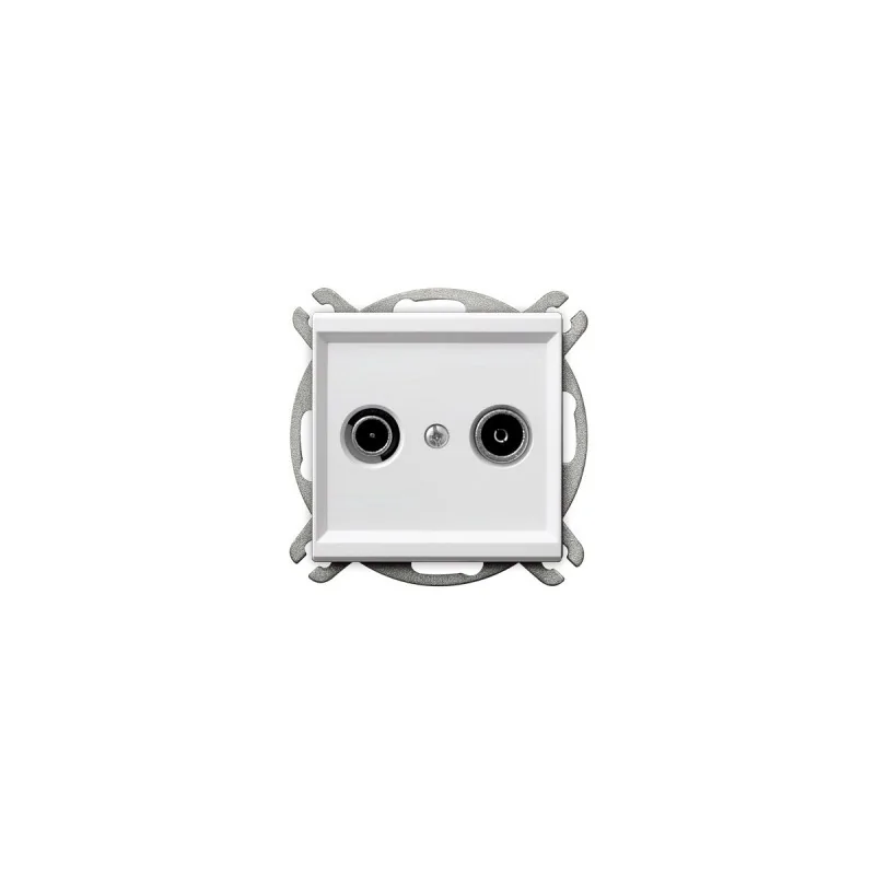 Gniazdo antenowe RTV zakończeniowe w kolorze białym serii SONATA firmy OSPEL, przeznaczone do montażu podtynkowego. Gniazdo wymaga dokupienia ramki serii SONATA firmy OSPEL.