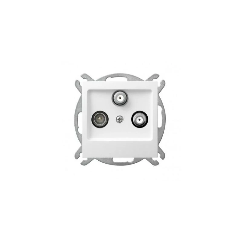 Gniazdo RTV-SATx2 firmy OSPEL z serii AS w kolorze białym, montowane pazurkowo lub gwintowo.