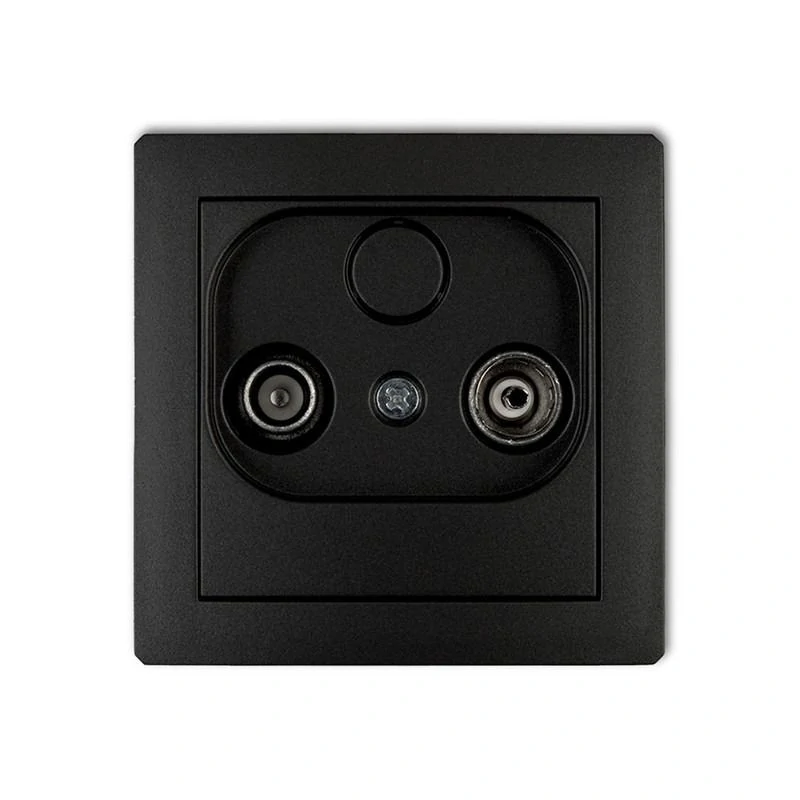 Gniazdo abonenckie RTV końcowe 2dB w kolorze matowym czarnym serii DECO firmy KARLIK, przeznaczone do montażu podtynkowego. Gniazdo wymaga dokupienia ramki serii DECO firmy KARLIK.