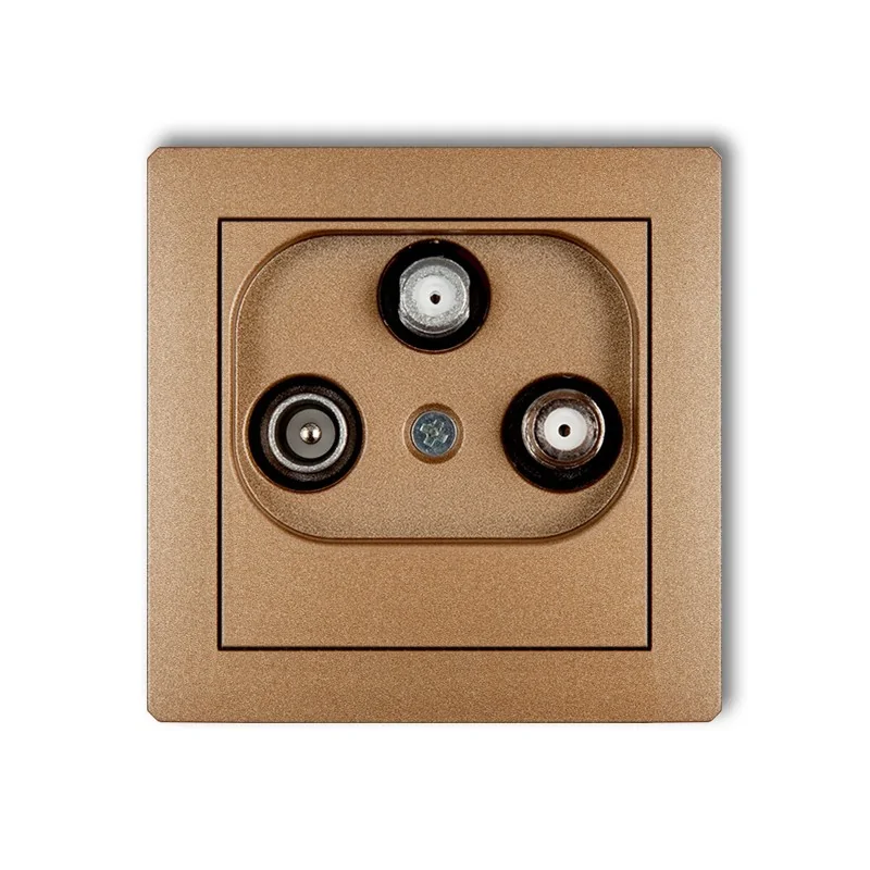 Gniazdo abonenckie 8DGSN zaprojektowano do odbierania sygnału satelitarnego w odbiornikach multimedialnych, jakie posiadasz w swoim domu, bądź mieszkaniu. Przewody koncentryczne umożliwiają odbieranie sygnału telewizyjnego, radiowego oraz internetowego w dowolnych pomieszczeniach. Kontakt 8DGSN z linii DECO KARLIK posiada trzy wejścia na przewody koncentryczne (2xSAT oraz TV). Model w kolorze złotym cechuje się wysoką odpornością na uszkodzenia oraz promieniowanie UV. Gniazdko umożliwi Ci komfortowe podłączenie tv satelitarnej w Twoim salonie. Gniazdo sprzedawane jest bez ramki w zestawie. W serii DECO dostępne są ramki instalacyjne w krotnościach 1-5, ramki wypełniające- niwelujące szczelinę pomiędzy ramką a ścianą (opcja dodatkowa) oraz ramki pośrednia w różnych kolorach, co pozwala na stworzenie własnej kompozycji.