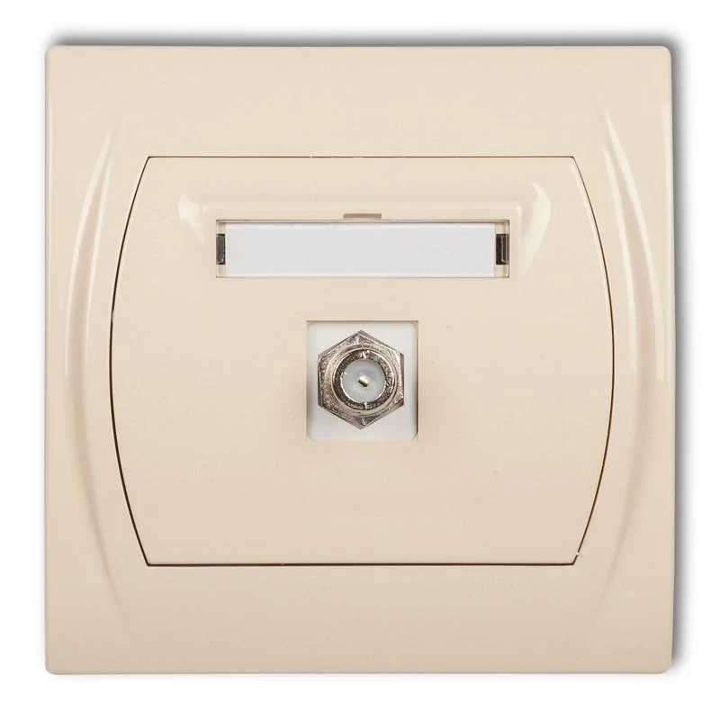 Pojedyncze gniazdo antenowe typu F (SAT) 1LGF-1 serii LOGO firmy KARLIK przeznaczone jest do montażu podtynkowego. Gniazdo antenowe sprzedawane jest z pojedynczą ramką w zestawie zwaną monoblokiem. Gniazdo typu F jest w kolorze beżowym oraz jest klasycznego wyglądu, dlatego świetnie wygląda na każdej ścianie. Do gniazd serii LOGO można dokupić ramkę wielokrotną poziomą. Gniazdo antenowe niklowane posiada typ złącza F.
