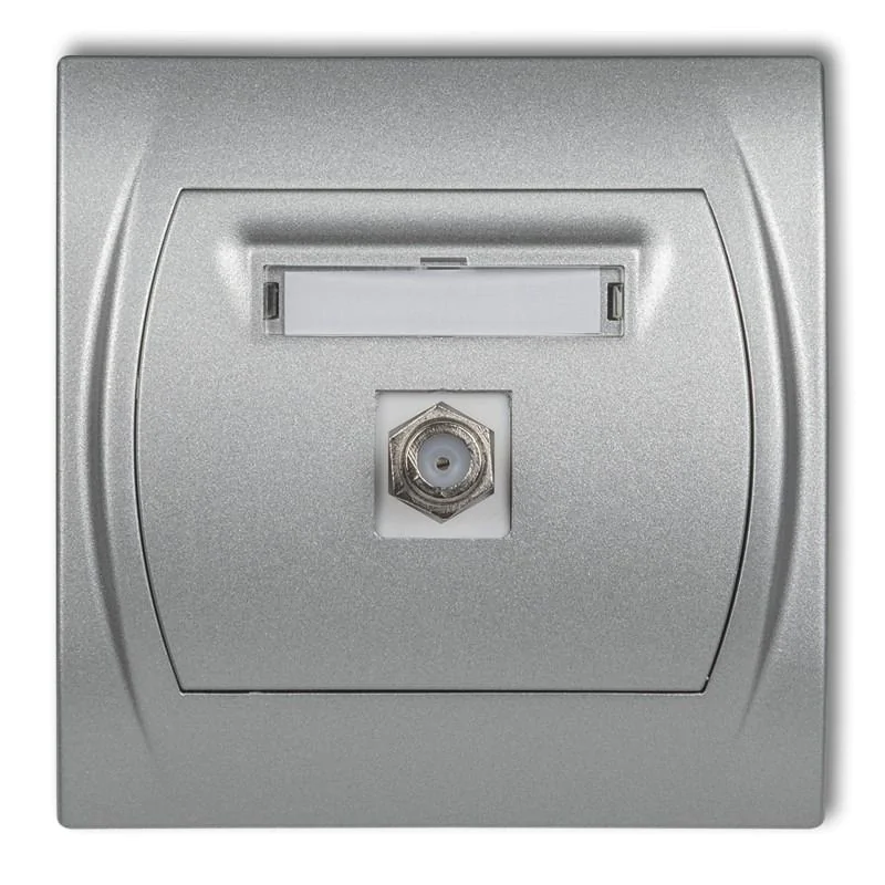 Gniazdo antenowe pojedyncze typu F (SAT) 7LGF-1 serii LOGO firmy KARLIK przeznaczony jest do montażu podtynkowego. Gniazdo antenowe jest w kolorze srebrnym metalicznym i sprzedawane jest z ramką w komplecie. Gniazdo antenowe posiada złącze typu F (SAT). Dostępne sa również inne gniazda antenowe firmy KARLIK różniące się wyglądem oraz kolorystyką. Gniazdo antenowe 7LGF-1 ma elegancki wygląd, dzięki czemu świetnie prezentuje się na ścianie.