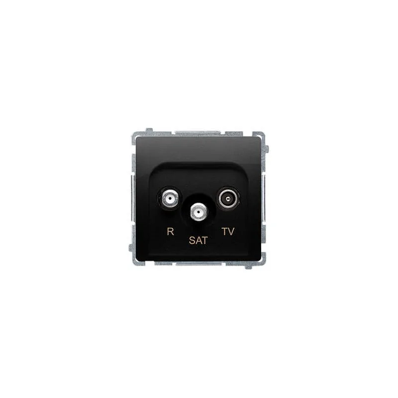 Gniazdo antenowe R-TV końcowe, separowane (moduł); czarny mat do montażu podtynkowego. Gniazdo wymaga dokupienia standardowej ramki instalacyjne serii Simon Basic.