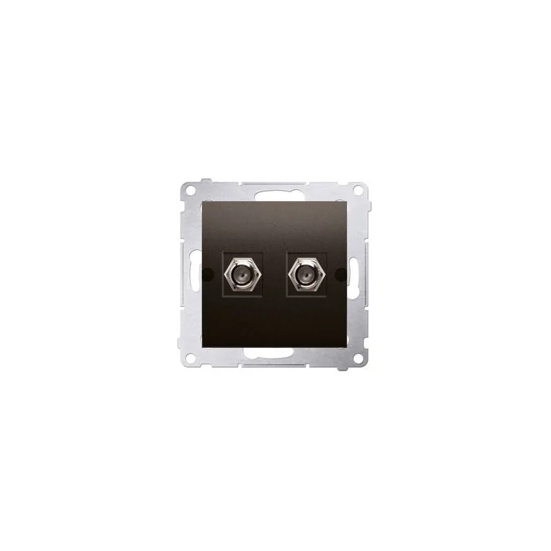Gniazdo antenowe typu "F" podwójne (moduł). Do instalacji indywidualnych; brąz mat