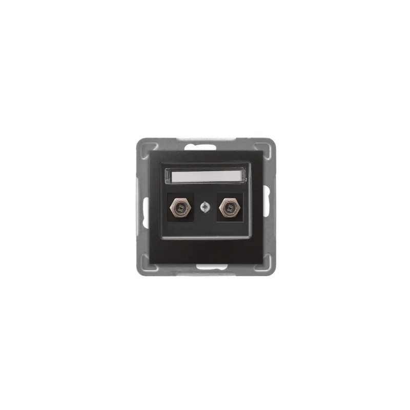 Podwójne gniazdo antenowe typu F w kolorze złotym serii IMPRESJA firmy OSPEL, przeznaczone do montażu podtynkowego. Gniazdo wymaga dokupienia ramki serii IMPRESJA firmy OSPEL.