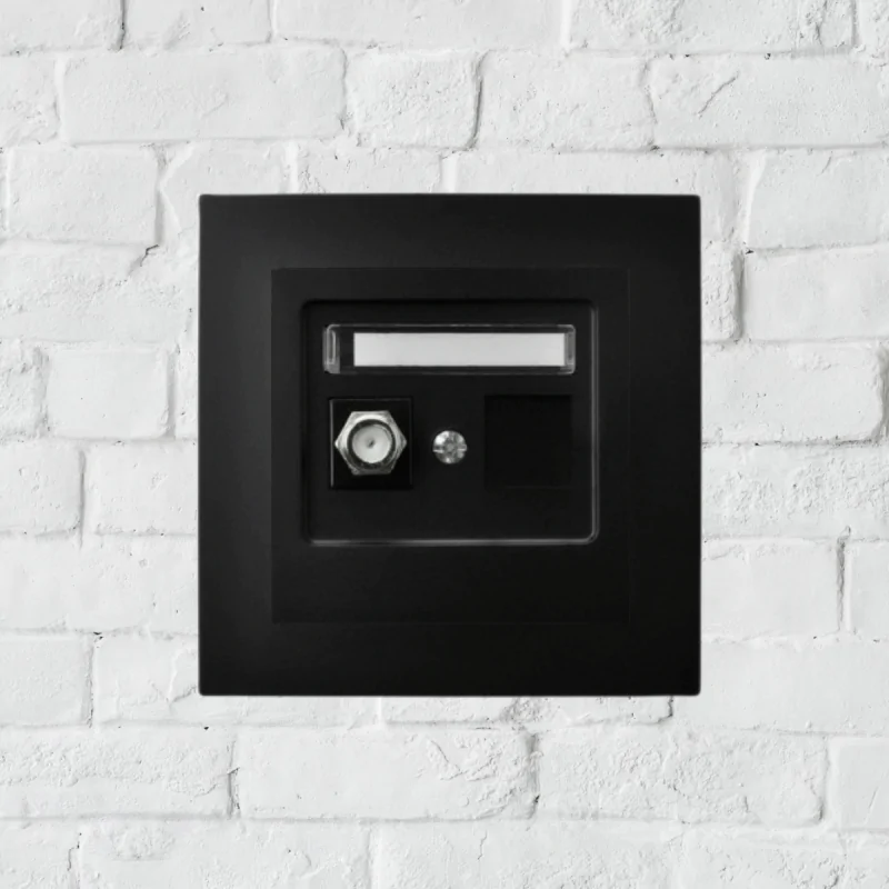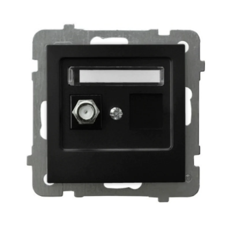 Gniazdo antenowe typu F serii AS firmy OSPEL w eleganckim wykończeniu czarny metalik, dedykowane do montażu podtynkowego. Pasuje wyłącznie do ramek z tej samej linii- do dokupienia osobno. Idealne do instalacji RTV/SAT w nowoczesnych wnętrzach, łączy funkcjonalność z estetyką.