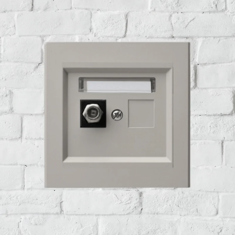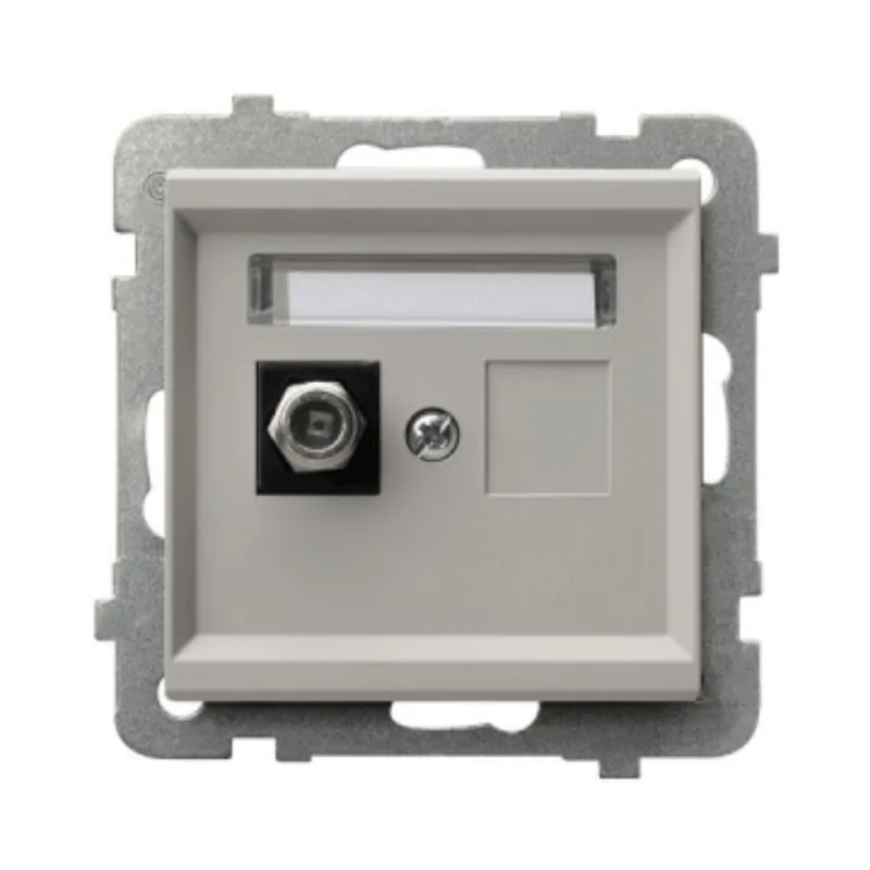 Gniazdo antenowe typu F serii SONATA firmy OSPEL w eleganckim kaszmirowym kolorze, dedykowane do montażu podtynkowego. Pasuje wyłącznie do ramek z tej samej linii- do dokupienia osobno. Idealne do instalacji RTV/SAT w nowoczesnych wnętrzach, łączy funkcjonalność z estetyką.