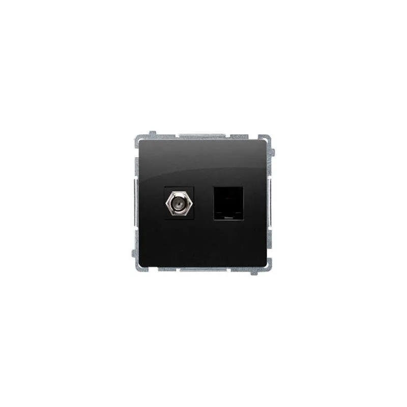 Gniazdo antenowe typu "F" + komputerowe RJ45 serii Simon Basic marki Kontakt-Simon w kolorze czarny mat przeznaczone jest do montażu podtynkowego. Do gniazda należy dokupić standardową ramkę instalacyjną serii Simon Basic.