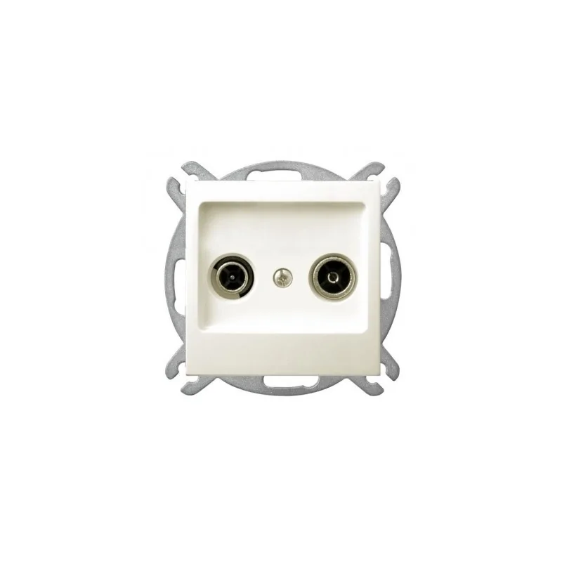 Gniazdo antenowe zakończeniowe RTV w kolorze ECRU serii IMPRESJA firmy OSPEL, przeznaczone do montażu podtynkowego. Gniazdo wymaga dokupienia ramki serii IMPRESJA firmy OSPEL.