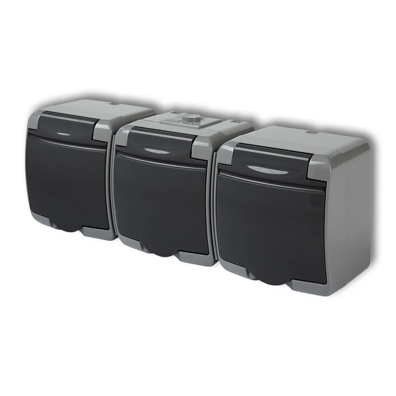 Gniazdo potrójne natynkowe szare