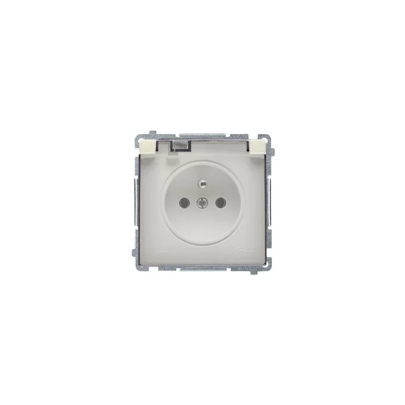 Gniazdo wtyczkowe z uziemieniem, bryzgoszczelne IP44 (moduł) 16A, 250V, zaciski śrubowe. Klapka transparentna; beż