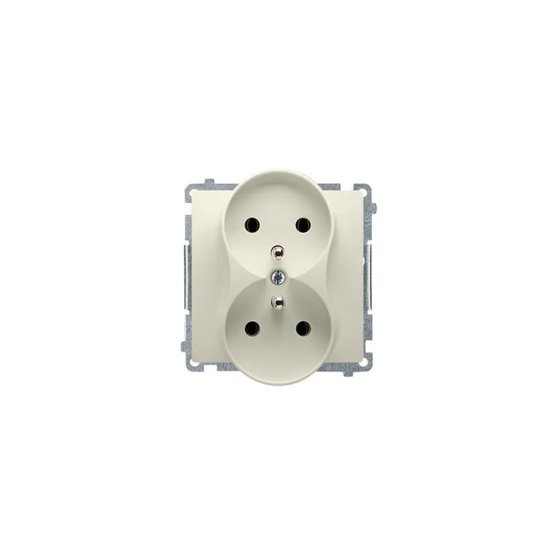 Gniazdo wtyczkowe podwójne z uziemieniem (moduł), Σ16A, 250V, zaciski śrubowe; beż