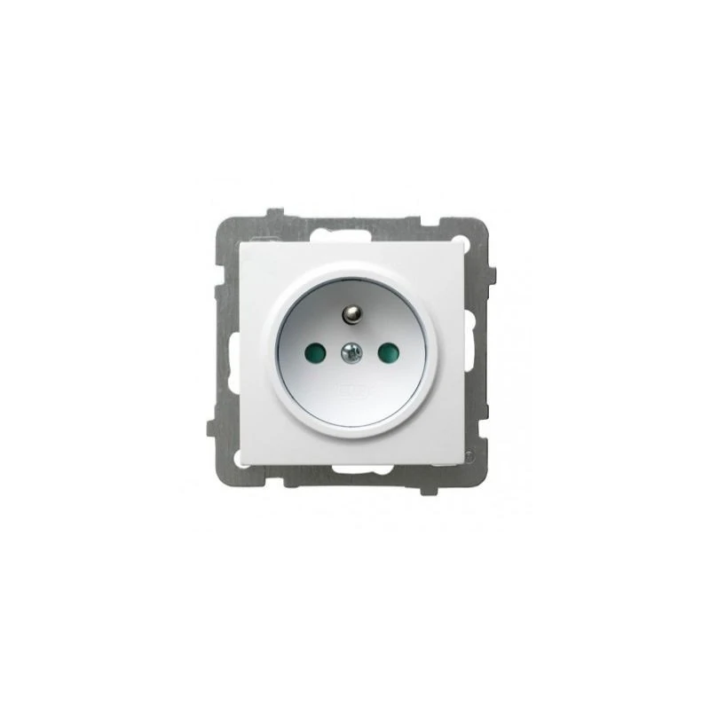Pojedyncze gniazdo elektryczne z uziemieniem GP-1GZP z serii AS firmy OSPEL, w kolorze białym przeznaczone jest do montażu podtynkowego. Dzięki prostej konstrukcji zacisków z gwintami mechanizm gniazda z łatwością zamontujesz w puszce. Idealne do zastosowań domowych - jako źródło zasilania, kolor biały współgra z wieloma aranżacjami wnętrz. Gniazdo z serii AS wyposażone jest w bolec z uziemieniem oraz przesłonę torów prądowych. Posiada również klasę szczelności IP20 i wykonane jest z wysokiej jakości materiałów, dostępne w różnych wersjach kolorystycznych. Gniazdko firmy OSPEL nie posiada w komplecie ramki, może być zamontowane w ramce pojedynczej lub modułowej w układzie pionowym bądź poziomym. Produkty z serii AS charakteryzują się klasycznym wyglądem, opartym na kwadracie z mocno zarysowanymi brzegami.