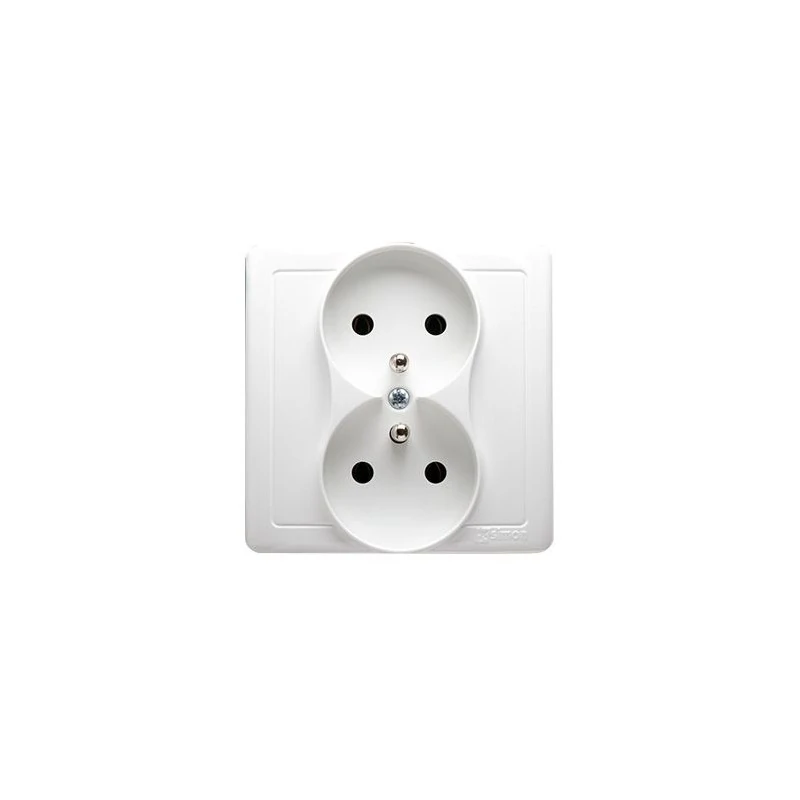 Gniazdo wtyczkowe podwójne z uziemieniem kompletne Σ16A, 250V, zaciski śrubowe; biały