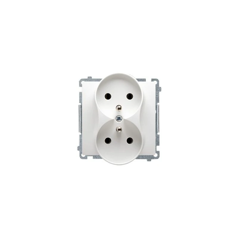 Gniazdo wtyczkowe podwójne z uziemieniem (moduł), z przesłonami torów prądowych, Σ16A, 250V, zaciski śrubowe; biały