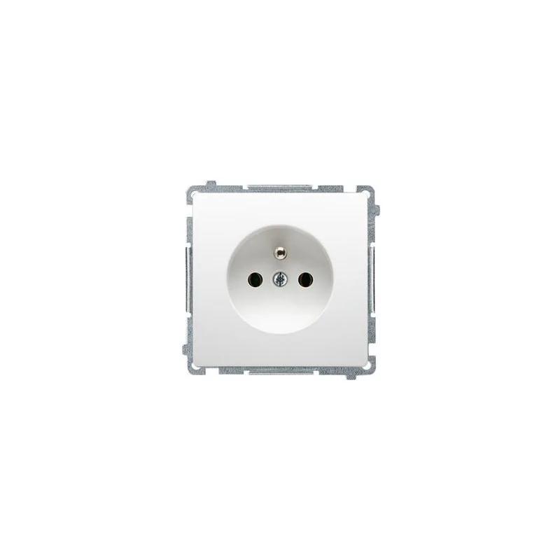 Gniazdo wtyczkowe z uziemieniem (moduł), z przesłonami torów prądowych, 16A, 250V, zaciski śrubowe; biały