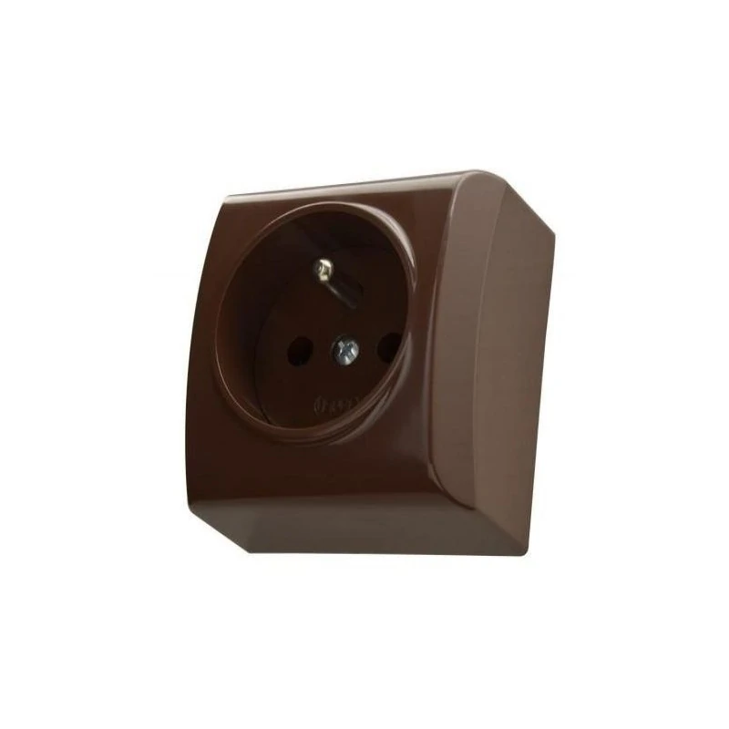 Pojedyncze brązowe gniazdo elektryczne BIS GN-1BZ z uziemieniem przeznaczone jest do montażu natynkowego. Sprawdzi się wszędzie tam gdzie poprowadzenie podtynkowej instalacji elektrycznej jest utrudnione lub niemożliwe. Gniazdo z bolcem, czyli posiadające uziemienie, jest niezbędne wszędzie tam gdzie do zasilania będzie podłączony sprzęt komputerowy, lodówka, pralka czy sprzęt RTV. Gniazdo takie zapewnia ochronę prze porażeniem prądem. Gniazdko GN-1BZ firmy OSPEL wykonane jest z tworzywa sztucznego o błyszczącej powierzchni. Mechanizm gniazda posiada stopień ochrony na czynniki zewnętrzne IP20.