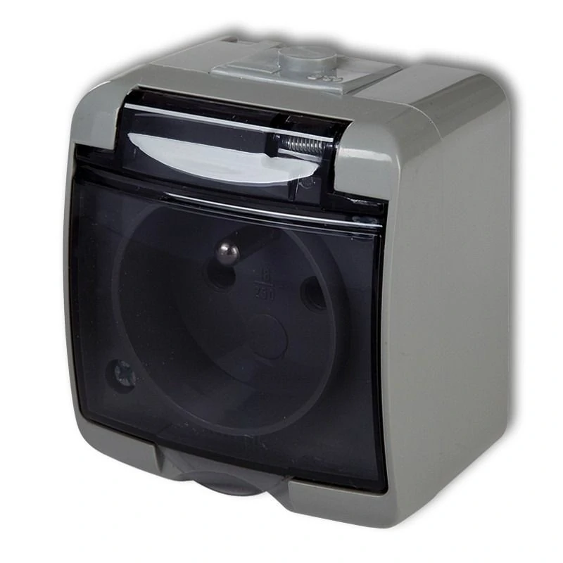 Szare gniazdo wtykowe 10GHE-1d to natynkowy osprzęt cechujący się podwyższoną odpornością na wilgoć czy zapylenie. Gniazdo jednofazowe posiada dwa otwory na przewód fazowy i neutralny oraz bolec uziemiający. Natynkowe źródło zasilania z uziemieniem 10GHE-1d pochodzące z serii JUNIOR polskiego producenta KARLIK posiada dodatkowe zabezpieczenie w postaci ruchomej przydymionej klapki. Popielaty bryzgoszczelny kontakt możesz zamontować w garażu, warsztacie, na tarasie czy w innych lokalizacjach, gdzie panują wymagające warunki takie jak : hałas, zakurzenie czy zawilgocenie. 10GHE-1d nie posiada osłony torów prądowych.