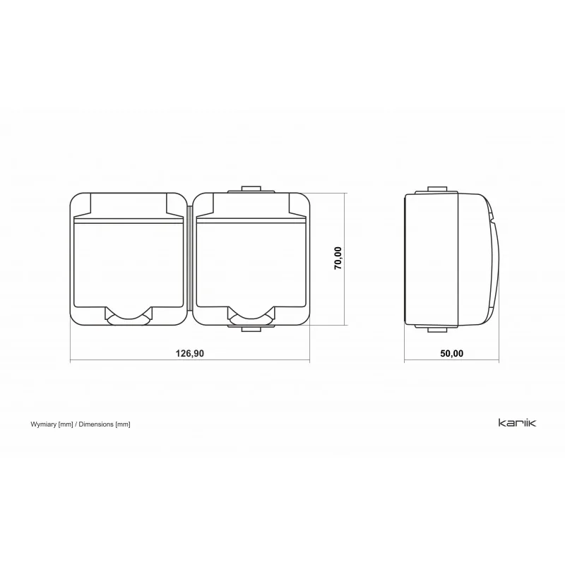 - Wymiary (wys x szer x gł): 70 x 126,9 x 50 mm
