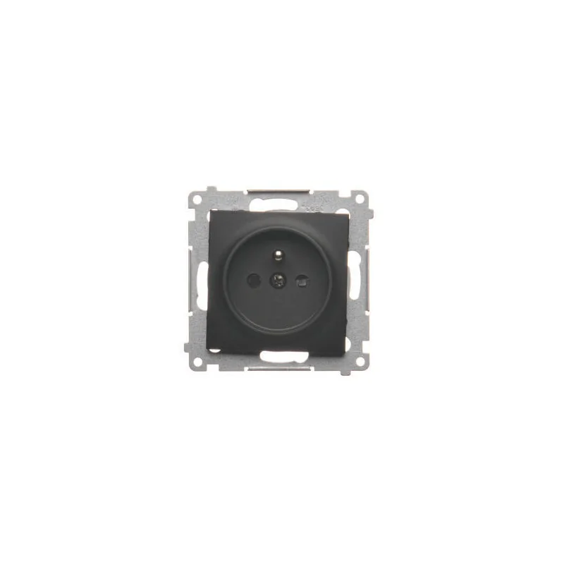 Gniazdo wtyczkowe z uziemieniem i przesłonami (moduł) 16A, 250V, zaciski śrubowe; czarny mat