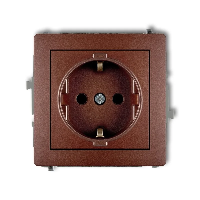 Pojedyncze gniazdo z uziemieniem schuko 9DGP-1sp z serii DECO polskiej firmy KARLIK przeznaczone jest do montażu podtynkowego. Gniazdo wyposażone zostało w przesłony torów prądowych, które zabezpieczają dzieci przez włożeniem np. metalowego przedmiotu do gniazda. Produkt sprzedawany jest bez ramki w zestawie. W serii DECO dostępne są ramki w krotnościach 1-5 w różnych kolorach. W ofercie znajdują się również ramki wypełniające- niweluje szczelinę pomiędzy ramką standardową, a ścianą (opcja dodatkowa) oraz pośrednie w bogatej kolorystyce, co pozwala na stworzenie własnej kompozycji.