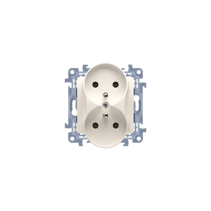 Gniazdo wtyczkowe z uziemieniem podwójne (moduł) 16A, 250V, zaciski śrubowe; krem