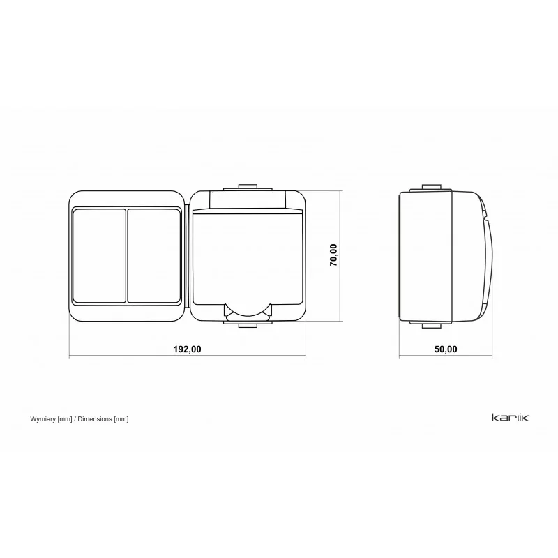 Włącznik podwójny z gniazdem hermetycznym i przesłonami n/t WGHP-2p JUNIOR KARLIK