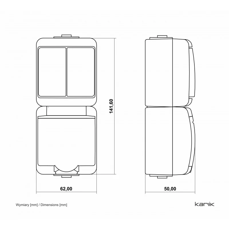 Włącznik podwójny z gniazdem hermetycznym i przesłonami n/t WGHP-2p JUNIOR KARLIK