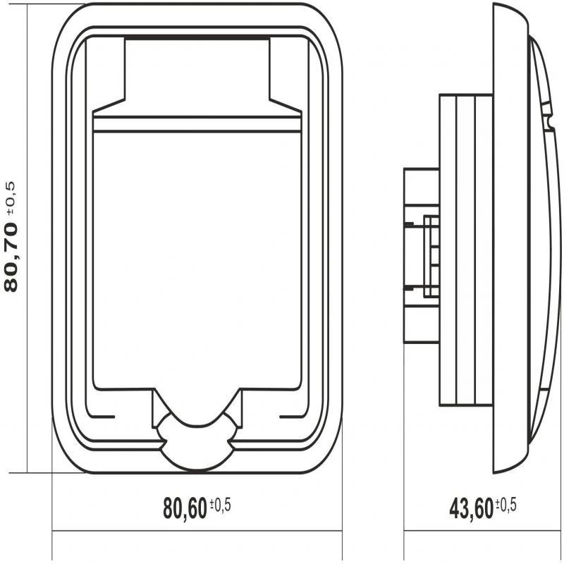 - typ: gniazdo pojedyncze z klapką dymną